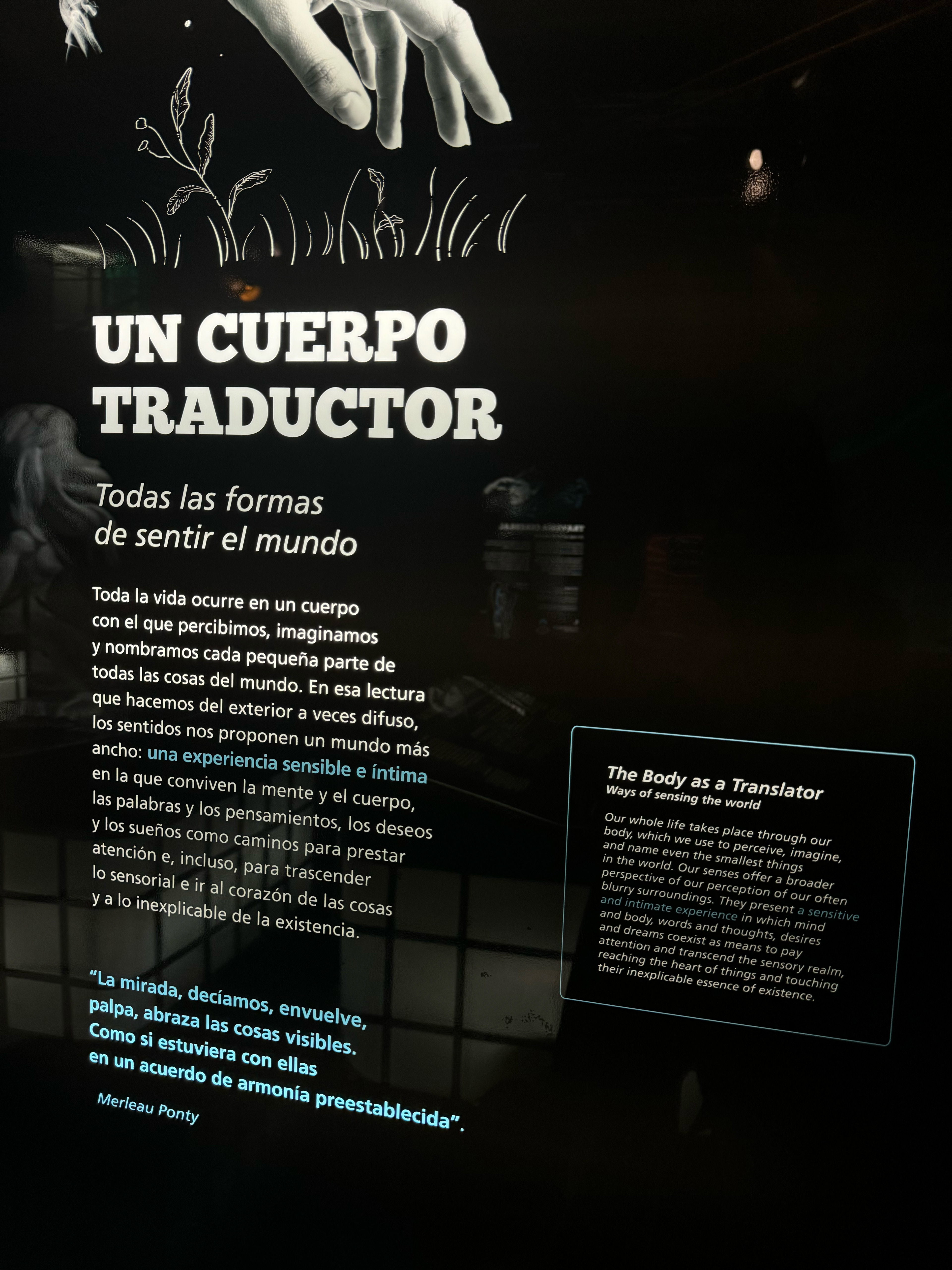 An immersive installation created for the Mind Hall (Sala de la Mente) at Parque Explora, born from a fundamental question: how do we translate the world through our bodies?