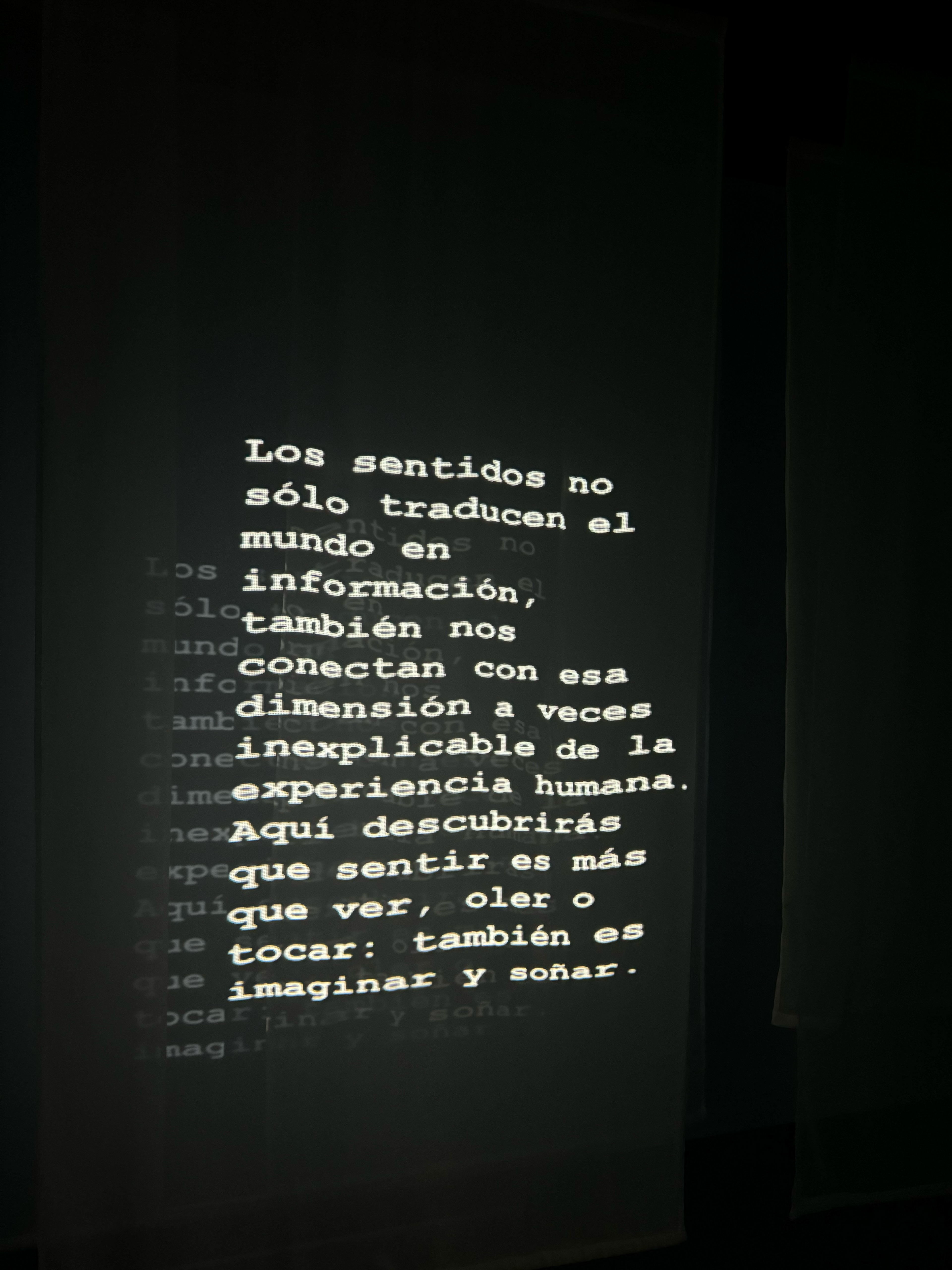 Through an interplay of projections and atmospheres, the piece invites the viewer to transcend ordinary perception and rediscover that to feel is also an act of imagining and dreaming.