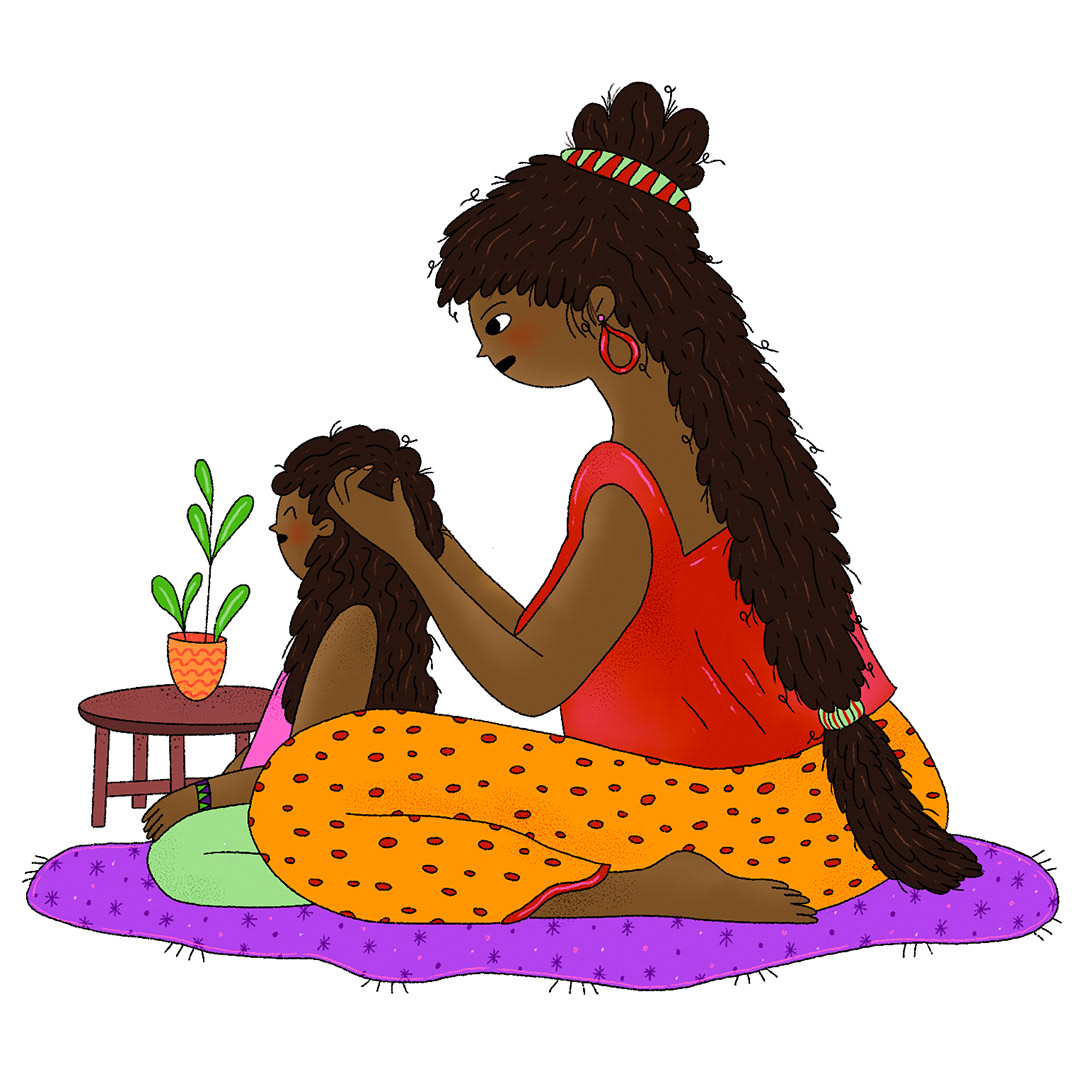 Mother braiding hair / Wayuu weavers